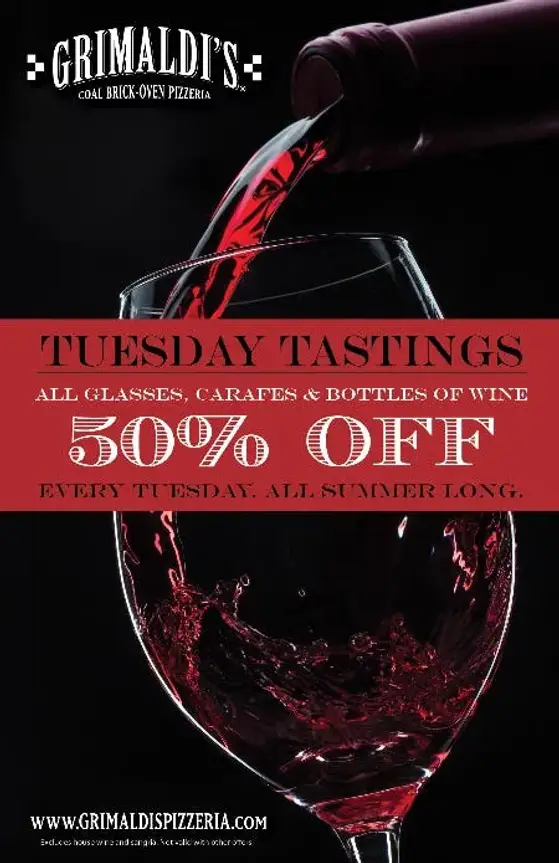 Every Tuesday, guests can enjoy half-off glasses and bottles of wine, as well as glasses of sangria. Dine-in only.