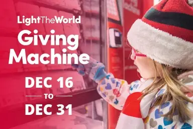 The Light the World Giving Machine is a unique, charitable vending machine initiative that allows people to purchase donations for those in need. Instead of buying a snack or beverage, users can select items like meals, clothes, safety, or livestock, which are then donated to local and global charities. Through partnerships with a variety of nonprofit organizations, the Giving Machines provide a simple and impactful way for individuals to give directly to specific causes during the holiday season. 100% of each donation goes directly to the chosen charity, making it an easy and meaningful way to make a difference.